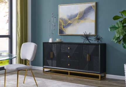 Part of the varese collection our varese aged mirror console sideboard is a serious statement of stunning luxury. it is covered all over in mirrors on every edge. even better the mirrors have been given an aged appearance with gentle foxing or distressing so that they have a vintage feel. it creates a showstopper to impress guests in the dining room with its concentric contrast ring design on the drawer fronts. inside there is plenty of space on the two shelves for cutlery and crockery mats and tablecloths serving dishes and glasses plus bottles of wine and spirits soft drinks and mixers.Features: