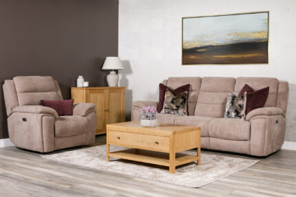 Russo 2 Seater Electric Recliner in Mushroom – a modern marvel of comfort and convenience. With its contemporary compact design and fabric upholstery, it seamlessly blends style with functionality. This recliner features electric reclining capabilities, allowing you to effortlessly adjust to your preferred position for maximum relaxation. Plus, with integrated USB and USB-C ports, staying connected while unwinding has never been easier.