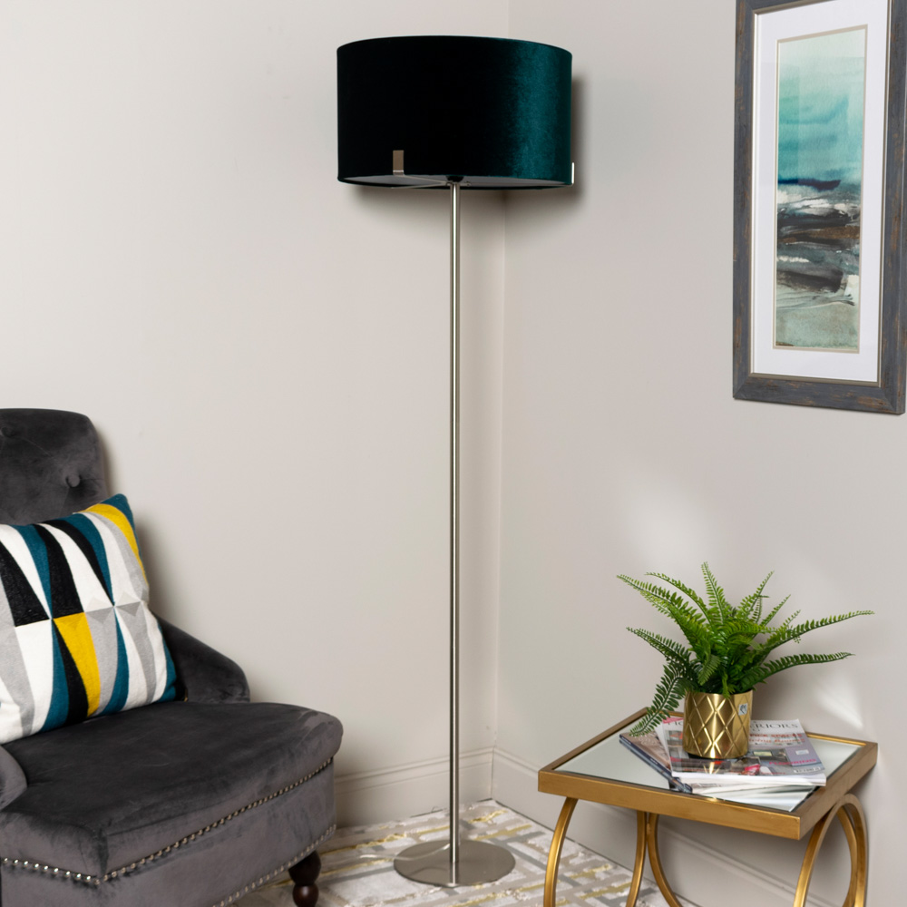 The Charlotte lamp is all party above and business below with a lush teal velvet shade that sits atop the simplest of metal bases in smooth silver metal. The result is a dreamy mix of bold colour and sleek contemporary design.