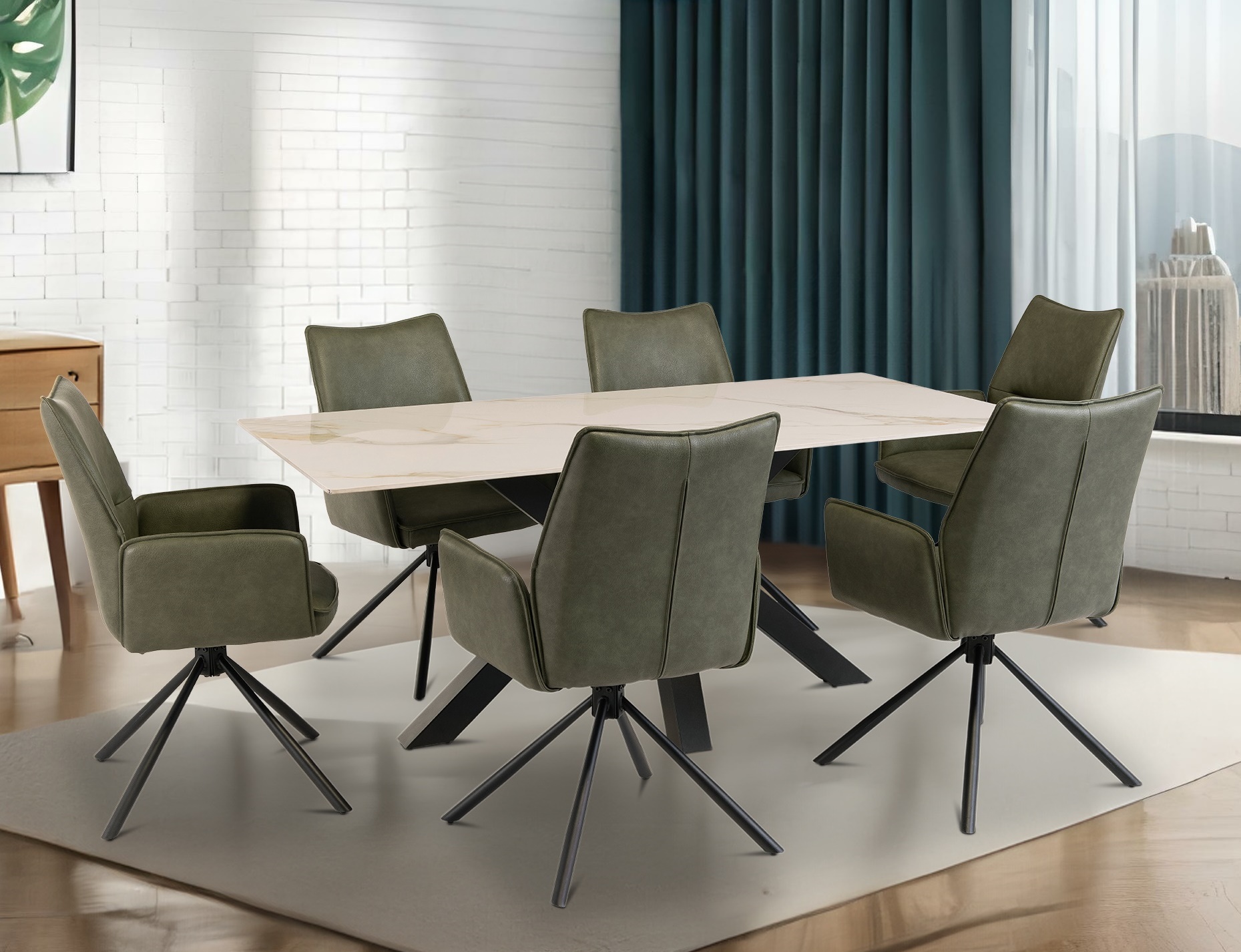 Featuring a stunning stone top finish, the Correy dining table exudes elegance and sophistication. Its powder-coated metal base adds a touch of modernity and durability to its design. Whether it’s for casual family meals or entertaining guests, this table is designed to seamlessly fit into your everyday living.