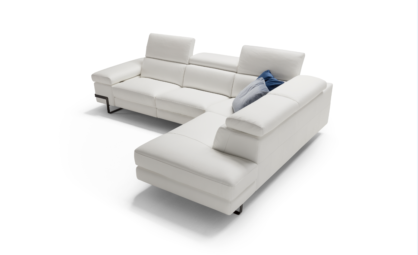metal feet. Peculiar: All covers are equipped with a manual headrest. Recliner “Zero Wall” System with electrical function. Bed Version “rapido