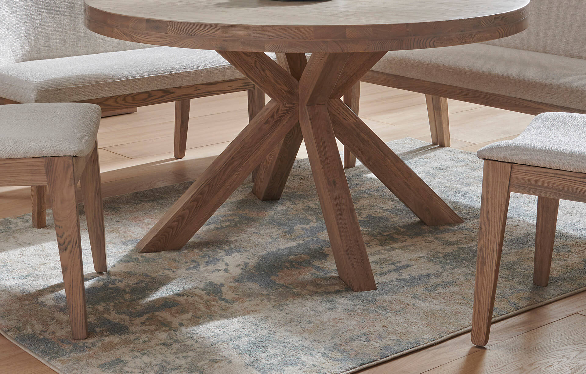 Falun Round Dining Table in Smoked Oak – a stylish centrepiece for your dining area. With its contemporary design and oak veneer tabletop, this table adds a touch of modern elegance to any space. Supported by solid oak legs, it combines durability with sophistication, making it the perfect choice for your home.