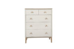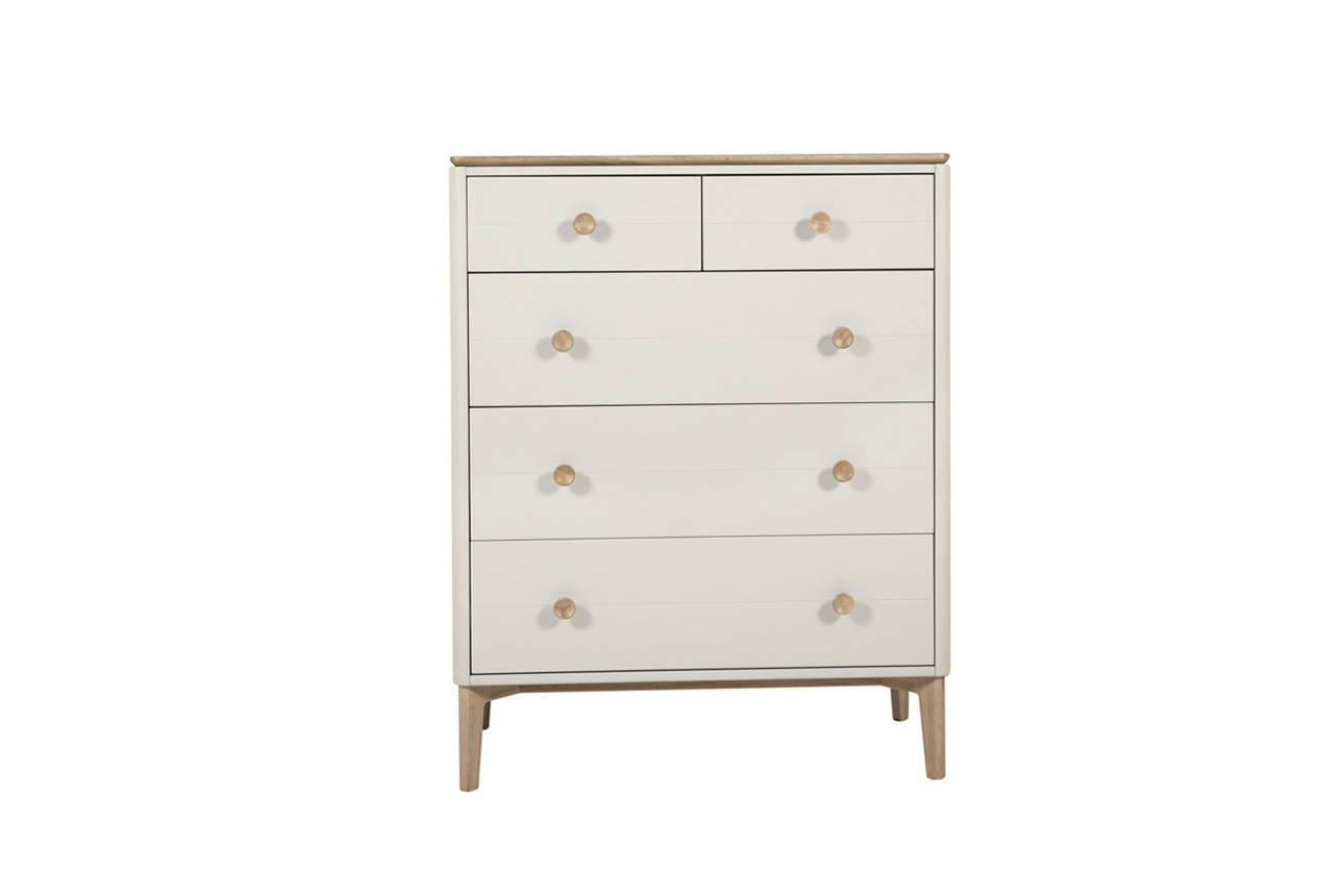 Introducing the Marlow medium chest by VIDA, which is perfect for furnishing your bedroom in a modern Scandi style. It is crafted from American white oak with a natural finish to bring sophistication and timelessness into any space. This medium chest offers five deep soft close drawers for you to store your belongings, so you can keep your bedroom neat and tidy. The full range of bedroom products including beds and bedside tables complete the collection to create a contemporary look.