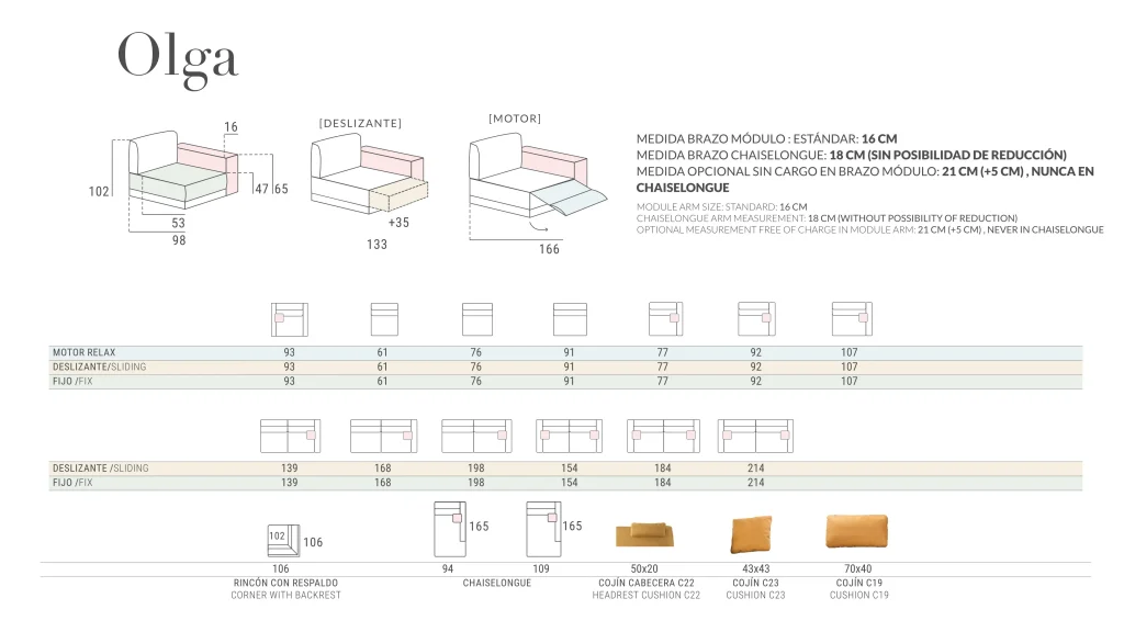- Seats: Ecological polyurethane foam 35 kg. soft soya.