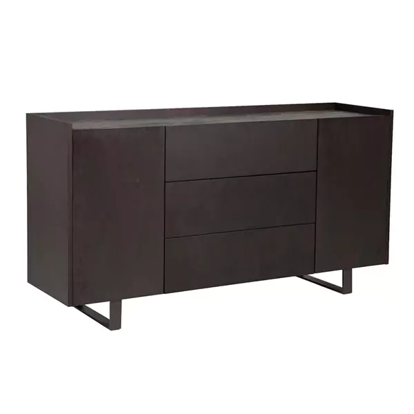 Seti Sideboard in Brown – a stylish storage solution with a modern twist. Featuring black-coated legs and ceramic tabletops on a dark bronze powder-coated steel base, it’s both durable and elegant. With three drawers and two cabinets, each sporting a fixed shelf, this sideboard offers ample storage space for your essentials. VIDA-registered for design excellence, it’s as practical as it is stylish.